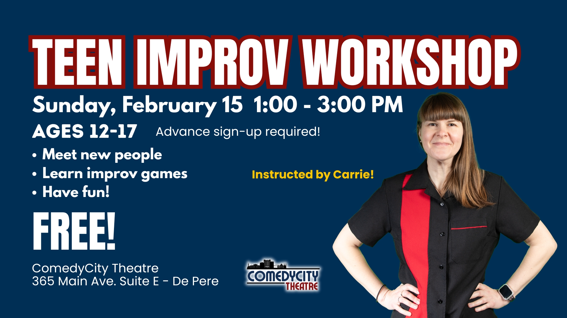 ComedyCity Theatre 365 Main Ave., DePere, WI, United StatesIs your teenager looking for something to do this winter? Might they be interest in learning a little improvisational comedy? If so, have them join us for a free Teen Improv Workshop at ComedyCity Theatre on Sunday, February 15 from 1–3 PM. Ages 12–17. (sign them up) This fast-paced, high-energy two-hour session is a hands-on […]